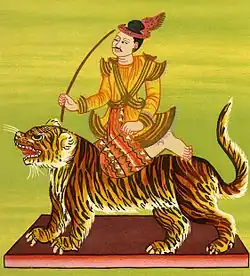 Maung Po Tu (Burmese: မောင်ဘိုးတူ [màʊɰ̃ pʰó tù]) is one of the 37 nats in the Burmese pantheon of nats. He was a tea trader during the reign of King Minkhaung I of Ava, and he was killed by a tiger on his way to Shan State. He is portrayed sitting on a tiger, a stick in his right hand, and his left hand on his thigh.[1] Maung Po Tu is considered the guardian of traders and their businesses.[2]