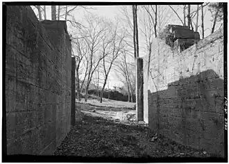 The era of the canal ended fairly quickly (around 1880) along the river, as the Richmond and Alleghany Railroad and later Shenandoah Valley Railroad both built rail lines along major portions of the river which offered faster and easier transportation.[4] Numerous artifacts remain from the canal days including several lock and dam ruins. The lock at Ben Salem Wayside between Buena Vista and Interstate 81 on U.S. Route 60 is well preserved in a park setting. At least two dams from the canal era remain and impound water, Moomaw's Lock and Dam below the US 60 bridge in Buena Vista, and the Lexington Mills Dam at Jordan's Point in Lexington which formed the end of canal boat navigation.[5] Several other lock and dam ruins, some almost complete dams, are visible along the river from the Chessie Nature Trail. The Gooseneck Dam downstream of Buena Vista is notable for being featured in a photograph by acclaimed 1950s railroad photographer O. Winston Link.[6]