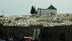 His mausoleum, marked by a green pyramidal roof, is the most prominent structure of the cemetery, one section of which is named after him.[2][4] The founder of the Alaouite dynasty, Moulay Rashid, was buried here in the 17th century.[3] The current structure was built (or rebuilt) by Sultan Mohammed ibn Abdallah in the late 18th century.[3] The tomb of Sidi Harazem is still the subject of a popular moussem (religious festival) every spring and his tomb was historically involved in other popular religious rituals and events.[2][4] The mausoleum was recently restored in the mid-2010s by the local conservation agency ADER-Fès.[5]