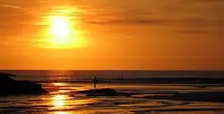 The sandy beach, backed by dunes with cliffs at each end, is quality-assessed and supervised by lifeguards during the summer. It is a popular surfing location. The South West Coast Path passes behind the beach and the area attracts holiday-makers.[3]