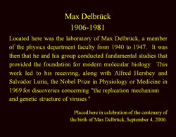 - ^ W. Hayes (1992). "Max Ludwig Henning Delbrück – September 4, 1906 – March 10, 1981". Biographical Memoirs of the National Academy of Sciences. 62: 67–117. PMID 11639973. Archived from the original on October 15, 2012. Retrieved July 22, 2012.