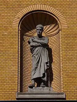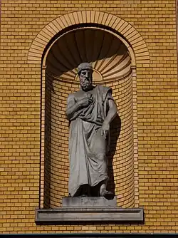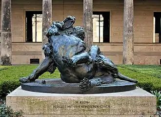His debut came at an Academy exhibition in 1877, but received little public recognition until 1879, when he displayed a dramatic bronze group, Hercules and the Nemean Lion.[2] In 1881, he was awarded a major commission to create figures of Plato and Aristotle, for the Joachimsthalsches Gymnasium, a school that was founded in the 17th century.