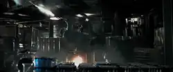 Upon finding the building for the Aesir Headquarters it took eight weeks in pre-production to build the set and another week for the special effects team to install the squibs.[15] The outside top half of the building was completely made of CG, by Mr.X, giving it a more high tech look. Using Google Earth they were able to find out the building's geometry. No location could be found for a rooftop helipad so a set was built in front of a green screen. Soho VFX attached the helipad to the building and set it atop New York City.[16]