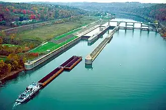 Maxwell Lock and Dam is a navigational lock and gated dam on the Monongahela River between Centerville in Washington County, and Luzerne Township in Fayette County in Pennsylvania.[1] It is part of a series of dams that canalizes the Monongahela to a depth of at least 9 feet (2.7 m) for its entire length from Fairmont, West Virginia to Pittsburgh, Pennsylvania. It is maintained by the U.S. Army Corps of Engineers, Pittsburgh District.