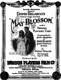 May Blossom is a 1915 American silent drama film directed by Allan Dwan and written by David Belasco based upon his 1884 play. The film stars Russell Bassett, Donald Crisp, Marshall Neilan, Gertrude Norman, and Gertrude Robinson. The film was released on April 15, 1915, by Paramount Pictures.[1][2]