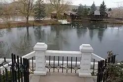 Bonfils Stanton willed approximately half of her $13 million estate – including the mansion and the surrounding 10 acres (4.0 ha) – to Stanton, with the provision that it be transferred to the Roman Catholic Archdiocese of Denver if he remarried. Stanton eventually donated the mansion to the Church, but when the Church could not find a use for it in keeping with the terms of Bonfils Stanton's will, it had the mansion demolished in 1970.[34] The marble entry gate and marble boat dock are still extant.[18] Bonfils Stanton put the other half of her estate in trust for the Franciscan Religious Order of St. Elizabeth's Catholic Church of Denver.[34][35]