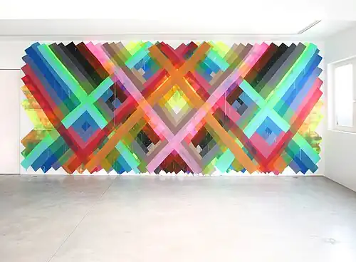Maya Hayuk (born 1969 in Baltimore, Maryland) is an internationally exhibited American artist living and working in Brooklyn, New York. She is best known for the bold geometric patterns she employs in large-scale murals.
