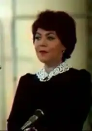 In 1957 she performed at the 6th World Festival of Youth and Students in Moscow with an amateur ensemble under the direction of Yury Saulsky and was awarded a Laureate prize. Later she started performing independently.[4] Wide popularity came to her starting in the early 1960s when she recorded the song "Dva Berega" ("We are Two Banks of the Same River") from the 1959 movie Thirst. The vinyl recording of the song sold 7 million copies.[5] Maya Kristalinskaya toured the country a lot, worked with the jazz orchestras of Eddie Rosner and Oleg Lundstrom, with the ensemble of Evgeny Rokhlin. In 1963, she performed "Ya Tebya Podozhdu" on popular show "Little Blue Light". Kristalinskaya was the original performer of the song "Nezhnost'" (1966) which is considered the epitome of her singing talent.[6] In 1966, Maya Kristalinskaya was recognized as the best pop singer of the year.[7]