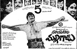 Mayadari Malligadu (transl. Mountebank Malli) is a 1973 Indian Telugu-language drama film directed by Adurthi Subba Rao.[1] The film stars Krishna and Manjula in lead roles, with Jayanthi, Anjali Devi, and Nagabhushanam in pivotal roles. It marks the debut of Manjula as a lead actress in Telugu cinema and features Krishna in the role of a bold, rebellious protagonist.[2]