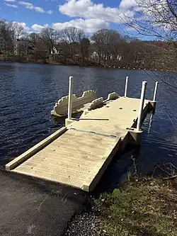 - Boating and fishing: The Assabet River upstream from the Ben Smith Dam offers miles of still water for fishing, canoeing and kayaking. There is a kayak/canoe launch dock at Ice House Landing, Winter Street, and an area at White Pond Road suitable to put boats into the water. This part of the river has a warm water, Class B, "fishable and swimmable" water quality classification.[46] The mill pond adjacent to Main Street is the property of Mill & Main Place, owners of the mill building complex. Inflow is from the Assabet River and outflow same. Both are controlled by Mill & Main Place. Fishing is allowed but no swimming, boating or ice skating.