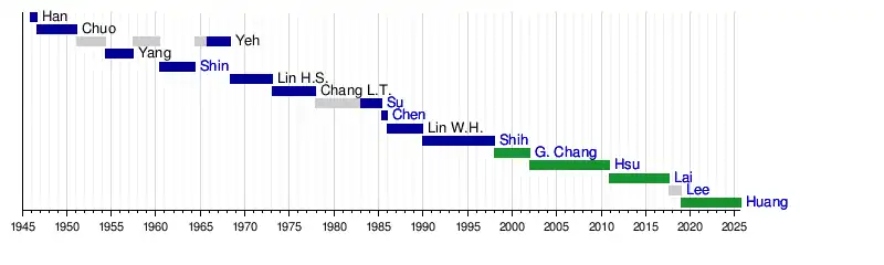 - ^ Left office to serve as Kaohsiung mayor.