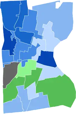 The result had largely corresponded to racial lines, with Milner performing well in the predominantly black North End (where he lived), and with Athanson and Ludgin splitting the predominantly white South End.[29][27] Murphy had performed her best in the liberal West End of the city (where she lived).[29][27] Athanson performed well in the South End of the city.[27] However, he underperformed on the North End, and lost the West End to Murray.[27] Milner performed strongly in the North End of the city, and had some strong performances in some parts of the West End.[27] In the Blue Hills portion of Hartford, Milner routed Athanson.[27]