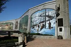 In the summer of 1998, a series of historical murals was begun on the downtown floodwall.[33] Over the next ten years, Robert Dafford and his team painted ten murals exploring the history of Maysville on various sections of the floodwall.[34]