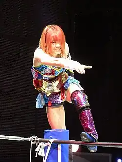 Mayu Iwatani (岩谷 麻由, Iwatani Mayu; ring name: 岩谷 麻優) (born February 19, 1993) is a Japanese professional wrestler, currently signed to Dream Star Fighting Marigold, where she is the current Marigold Super Fly Champion in her first reign. She is best known for her tenure with World Wonder Ring Stardom, where she was the leader of Stars.[10] She also wrestled for New Japan Pro Wrestling, where she is a former IWGP Women's Champion, which was the longest reign in the title's history.[11]