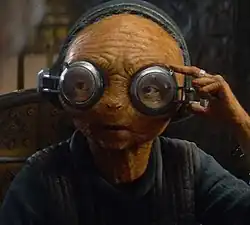 Maz is a diminutive, humanoid alien with orange-tinted skin who wears large goggles.[2] A former pirate and smuggler, she runs an interstellar tavern in a castle on the planet Takodana.[12] Abrams said of her backstory: