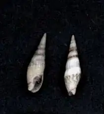 | Two views of a shell of Mazatlania fulgurata (museum specimens at Naturalis Biodiversity Center) | |