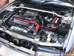 The Mazda B-series is a small-sized, iron-block, inline four-cylinder engine with belt-driven SOHC and DOHC valvetrain ranging in displacement from 1.1 to 1.8 litres. It was used in a wide variety of applications, from front-wheel drive economy vehicles to the turbocharged full-time 4WD 323 GTX and rear-wheel drive Miata.
