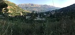 During the Mamluk era (13th–15th century), local chieftain Sheikh Nawfal Ibrahim El-Khoury bestowed the ruins of the monastery to an ancestor of Al-Husseini family, Sayyid Hussein al-Husseini. Al-Husseini is said to be the first person to reside in the abandoned area after he had restored the monastery.[2] The village is mentioned in Tannus al-Shidiaq's 1859 Akhbar al-aʿyan fi Jabal Lubnan (The History of the Notables in Mount Lebanon) as part of the Muqataʿaof Jebbet al-Mnaitra in the Muʿamala of Tripoli, a then subdivision of Mount Lebanon.[a][6] During the Mutasarrifate era (1861–1918), the village was administratively part of the Mnaitra mudiriyah, within the kaza of Kesserwan.[6][7]