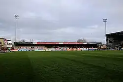 The Mazuma Mobile Stadium (formerly known as the Globe Arena for sponsorship reasons) is a football stadium in Morecambe, Lancashire, England, which is the home of Morecambe F.C.[1][2][3][4][5] The stadium opened in 2010, replacing the old Morecambe F.C. stadium, Christie Park, which was Morecambe's home from 1921 to 2010.[6] The stadium holds up to 6,476 supporters, with 2,173 seats available in the Main Stand, which runs the length of one side of the pitch.[7] Opposite the Main Stand is an uncovered terrace with a capacity of 606, giving a similar feel to the ground as that at Christie Park. At either ends of the pitch are the home and away stands, with the home end holding a maximum of 2,234 supporters and the away end having a capacity of 1,389.[8] In the north east corner of the stadium is the Tyson Fury Foundation, which is split between two floors. The building also houses a gym, which was purchased by Tyson Fury in August 2020.[9]