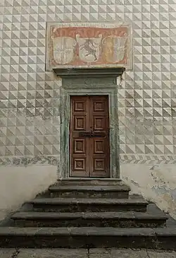 The church complex includes the medieval baptistery, the church of Saint Mary built in 1452 and the 17th-century oratory (a small chapel for private prayer or worship). The complex was renovated in the 17th century and later in the 19th century. A recent renovation revealed that the outside walls were covered with ancient frescoes depicting coats of arms, inscriptions, zodiac signs and the representation of the Months.[8]
