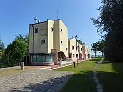 Mazzorbo is one of various islands in the northern part of the Lagoon of Venice. Like the other islands in this part of the lagoon, it was the site of one of the earliest settlements in the lagoon which predated the development of Venice. However, these islands then declined and were eventually abandoned. In the 1980s the architect Giancarlo De Carlo built a brightly coloured residential neighbourhood to help to repopulate Mazzorbo.[1] In 2019 its population was 256.[2] It is linked to Burano by a wooden bridge. It was once an important trading centre but is now known for its vineyards and orchards.[3] Its main attraction is the fourteenth century church of Santa Caterina.