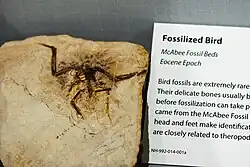 A volcanic ash exposed in the lake shale beds was originally radiometrically dated using the K-Ar method at ~51 million years ago;[10][12] however, a 2005 paper provided a radiometric date using the 40Ar-39Ar method places the McAbee Fossil Beds at 52.9 ± 0.83 million years ago, with both dates placing the McAbee fossil beds in the early Eocene Epoch.[22][23]