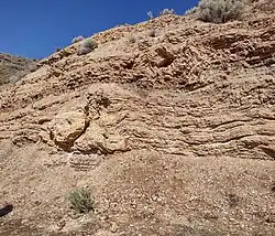 The McAbee Fossil Beds is a Heritage Site that protects an Eocene Epoch fossil locality east of Cache Creek, British Columbia, Canada, just north of and visible from Provincial Highway 97 / the Trans-Canada Highway (Highway 1). The McAbee Fossil Beds, comprising 548.23 hectares (1,354.7 acres), were officially designated a Provincial Heritage Site under British Columbia's Heritage Conservation Act on July 19, 2012.[1][2] The site is part of an old lake bed which was deposited about 52 million years ago and is internationally recognised for the diversity of plant, insect, and fish fossils found there. Similar fossil beds in Eocene lake sediments, also known for their well preserved plant, insect and fish fossils, are found at Driftwood Canyon Provincial Park near Smithers in northern British Columbia, on the Horsefly River near Quesnel in central British Columbia, and at Republic in Washington, United States.[3] The Princeton Chert fossil beds in southern British Columbia are also Eocene, but primarily preserve an aquatic plant community.[4] A 2016 review of the early Eocene fossil sites from the interior of British Columbia discusses the history of paleobotanical research at McAbee, the Princeton Chert, Driftwood Canyon, and related Eocene fossil sites such as at Republic.[5]