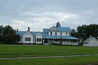 Named for its builder and first owner, the colorful J. J. McAlester, for whom McAlester was named, it began in 1870 as a four-room log house. At the time, it was located in Tobucksy County, Choctaw Nation, in the Indian Territory.[2] J. J. McAlester later surrounded the log structure with a single-story house and also built a much larger two-story Queen Anne style house joined by a breezeway to the smaller structure. Its furnishings, many of which remain to this day, reflected the prosperity and position that the McAlester family enjoyed in the community. The building was renovated in 1960 by J. L. McAlester, grandson of J. J. McAlester. In 1980, McAlester House was added to the National Register of Historic Places.[1][3]