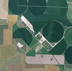 Today the land is owned primarily by farmers and the Nebraska Bureau of Land Management. Most of the concrete runways have been removed except for a 20' strip on the E-W and SW-NE runways. About a dozen World War II-era buildings still exist at the former airfield in various states of deterioration including four of the hangars.