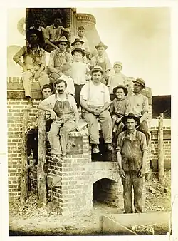 At first, the ware was wheel-thrown by individual potters. Williams threw the first piece on January 26, 1893, to celebrate the plant's opening.[5] Initially, Williams also did most of the work: preparing the clay; throwing, glazing and firing pots; and then hawking the vessels at roadside stands, nearby gas stations and even door to door. As the business grew, he started shipping carloads of ware by train to Austin and Houston[1] from the rail spur at the plant, while trucks carried the products into adjoining states and possibly beyond. In 1894, the pottery employed at least 20 people, including family members.[4]