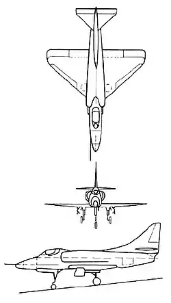 The Australian Skyhawks, which were designated the A-4G, were a variant of the A-4F Skyhawk. The A-4F was the final single-seat version of the Skyhawk to be designed specifically for the US Navy, and first flew in 1966; 164 were eventually delivered.[11] It had a more powerful engine than that fitted to earlier Skyhawks, as well as better protection against ground fire.[11][12] Conversely, the A-4G did not have the distinctive "hump" containing avionics behind the cockpit of the A-4F (which earned the nickname "Camel"). The A-4G was also better suited to air combat and could carry AIM-9B Sidewinder air-to-air missiles,[11] though it lacked the A-4F's ability to launch guided air-to-ground weapons.[13] Two-seat TA-4G trainers were fitted with the same avionics and weapons as the single-seat aircraft, but were unable to be operated from Melbourne, as their flight characteristics meant that they could not safely take off from the ship in the event of a "bolter" landing.[8][13]