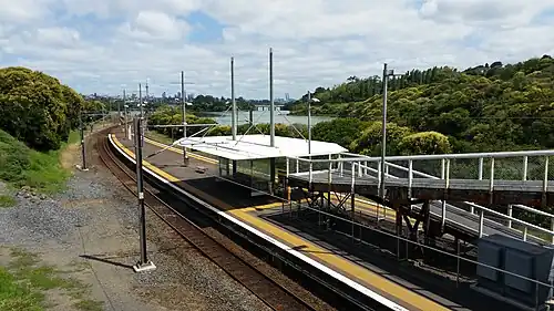 ![]() The station in January 2018, seen from the pedestrian footbridge, looking toward Auckland CBD | |||||||||||