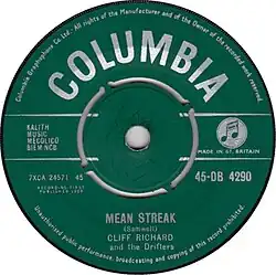- ^ "Cliff Richard & The Drifters – Mean Streak (1959, Vinyl)". Discogs. Retrieved 30 July 2021.