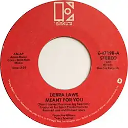 "Meant for You" is a song written by David Lasley and Roxanne Seeman and recorded by American singer Debra Laws. It was released in 1981 as the third single from Laws' Very Special album by Elektra Records.[1][2] The song was produced by Hubert Laws and Ronnie Laws. “Meant For You” appears in the film Fighting Back starring Tom Skerritt, Patti LuPone and Michael Sarrazin.[3]