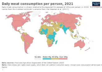 - ^ "Daily meat consumption per person". Our World in Data. 2020. Archived from the original on 5 July 2022. Retrieved 4 July 2022.