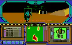 Finally, there is the combat simulation. Depending on the contract for a mission, the player must meet certain criteria ranging from defense of a facility to outright destruction of the enemy. Combat is shown in first person from the cockpit of a battlemech. The game's engine uses simple vector based graphics for the actual combat.
