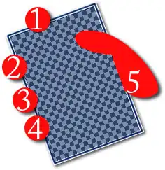 Mechanic's grip, also known as dealer's grip, is a specific method of holding a deck of playing cards in one hand. It is the standard grip taught in many dealer schools around the world, and it is also widely used by magicians and card cheaters as it provides a sturdy and versatile means by which to hold the cards. Covering the deck with the hand allows the holder to manipulate the cards so as to view the top card's face (useful in poker or blackjack) or to lift and select a card without the spectator's knowledge (useful in card tricks).[1]
