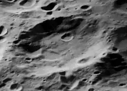 Mechnikov is an impact crater on the far side of the Moon. It is located just to the northeast of the much larger walled plain Galois, being separated by a stretch of irregular terrain about 20–30 km in width.