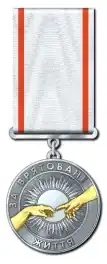 The Medal for Lifesaving (Ukrainian: Медаль «За врятоване життя») is a medal of Ukraine presented for saving human life, acts of charity, humanistic and other activities in public health, and accident prevention. The medal was established 20 May 2008 by presidential decree № 461.[1]