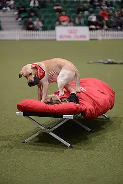 Many medical response dogs "alert" their handlers to conditions before they occur. For example, diabetes alert dogs partnered with diabetic persons may be trained to detect when the handler's blood sugar becomes too high or low.[1] In addition to or in the absence of this training, medical response dogs are also often trained skills to help in their handlers' symptoms, such as bringing medications or a telephone, providing bracing and other mobility assistance, or any other number of tasks.[2]