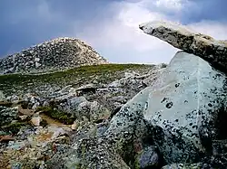 Geologic publications have suggested that the Snowy Pass Supergroup at the peak is significantly older than, and unrelated to, the orogeny of the surrounding Medicine Bow mountains.[2] These publications often refer to the mountain as "Medicine Peak", and its rock as "Precambrian Medicine Peak Quartzite". The quartzite, which lies unconformably on gneissic basement rock, has been analyzed for traces of Precambrian life.[3] The findings may be pseudofossils.[3]