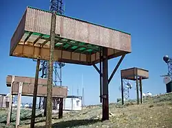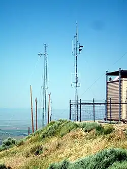 As well as housing towers and transmitters for radio stations, the mountain also has towers for amateur radio operations. It is owned by a resident from Manila, Utah and transmits on 146.680 MHz. Another amateur radio repeater nearby, transmits on 147.02 MHz. It is known as K70GM.[3] Local companies and telecommunications services also carry towers on the mountain. Emergency systems for Evanston and Uinta County also broadcast from towers on Medicine Butte. Daggett County, Utah also has services transmitting from the mountain. The United States Forest Service owns a tower on the mountain.[4]