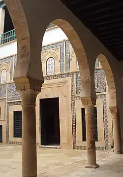 According to the inscriptions at the facade of the great mosque, the medina of Sfax was founded following the orders of the Aghlabid emir (prince) of Kairouan Abu Abbass Muhammad in 849, by Ali Ibn Salem, cadi of Sfax.[1] In fact, in the middle of the ninth century, the Aghlabids who used to rule Ifrikia agreed on supporting the city's shores with forts and trusses, that's when Borj Sfax or Kasbah of Sfax was built as one of the forts, but as time passed and life evolved around it the Aghlabid decided to build the city of Sfax.[2]