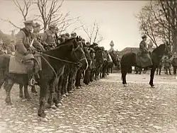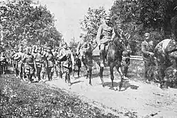 - ^ Medininkai were within the sector operated by the Soviet 36. Cavalry Division, which advanced along the Boruny – Oszmiana – Medininkai – Vilnius axis. Once it crushed minor Polish resistance on Sep 17, on Sep 18 it was ordered to seize Vilnius by the end of the day. However, the division reached Murowana Oszmianka only. It resumed the advance since early morning hours of September 19 and reached Vilnius by mid-day, Czesław Grzelak, Kresy w czerwieni, Warszawa 2008, ISBN 978-83-89935-61-8, p. 222