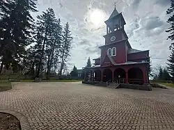 Religious service in the parish is held by the Franciscans from the 1994-established Medininkai monastery. Since then there have been 7 guardians, who in parallel headed the parish; until 2020 they appeared as pastoral administrators, later as a parish priests.[185] In 2023 this role was performed by Józef Makarczyk, the guardian but also a scientist and scholar in history of the Church, especially in the Grand Duchy.[186] The Medininkai monastery is very compact; in the 21st century there have been usually no more than 5 friars hosted at the premises. At the turn of the centuries it was the centre of Franciscan rebirth in Lithuania; currently it is one of 3 Franciscan monasteries in the country.[187] The parish and the monastery take care of the cemetery, located near the plot where the old, pre-1834 church used to stand. The oldest existing graves come from the 1860s;[188] it is still where the defunct villagers are laid to rest. There are few private cemeteries on the parish territory (Czapuniszki, Gudzie, Koleśniki, Kule, Małyniszki, Tumasy, Żemły); last burials took place there in the 1960s.[189]