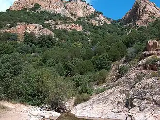 ![]() Hillside Riparian forest and mediterranean shrubland vegetation on Monte Arcosu, Sardinia | |