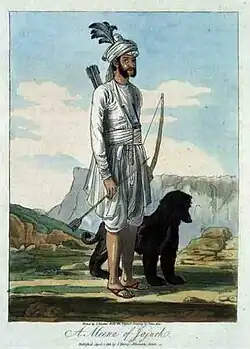 The Meenas were originally a nomadic tribe.[8][9] They were described as a semi-wild and hill tribe similar to the Bhils.[10] But in the British Raj, for the fulfillment of its purpose by the British Government, they were described as a "criminal tribe" and listed according to the Criminal Tribes Act.[11] Presently they are described as Scheduled Tribe by the Indian Government.[12]