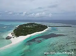 The island is formed above peaks emerging from the depths of the ocean, upon layers of both living and dead coral, and remnants of other marine life. Coconut palms towering above dense shrubs and hardy plants protecting the shores from erosion are natural features. The island is 1200 meters long by 350 meters wide, about 32 hectares.[2] A speedboat transfer from Velana International Airport is a 55-minute ride.