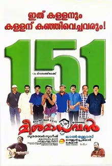 Meesha Madhavan (lit. 'Moustache Madhavan') is a 2002 Indian Malayalam-language action comedy film directed by Lal Jose and written by Ranjan Pramod. The film stars Dileep in the title role, while Indrajith Sukumaran, Kavya Madhavan, Jagathy Sreekumar, Harisree Asokan and Cochin Haneefa play supporting roles. It was the highest-grossing Malayalam film of the year. Meesa Madhavan raised Dileep's superstardom to a whole new level and developed a cult following in Malayalam cinema.[2] It was remade in Telugu as Dongodu (2003) starring Ravi Teja, in Kannada as Hori (2011) starring Vinod Prabhakar and in Tamil as Kollaikaran (2012) starring Vidharth.[3]