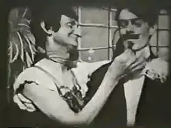 While the film is presented as a remake of Personal, it includes a greater variety of shots and more importantly presents an unprecedented twist at the end with the shot revealing that the bride is played by a man, celebrated female impersonator Gilbert Sarony.[2]